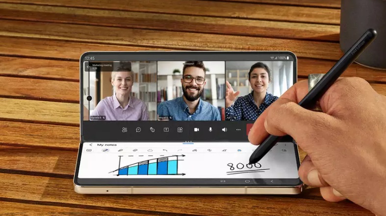Využijte velkou vnitřní obrazovku na maximum. S chytrými softwarovými vylepšeními je multitasking pohodlnější, než kdy dříve. K dispozici máte mimo jiné hlavní panel, který je podobný těm, jež znáte z počítačových operačních systémů. Užitečná je také funkce App Pair, umožňující spuštění až tří aplikací naráz, a to v předem určeném rozložení. Můžete například vybírat zboží v e-shopu a rovnou výběr konzultovat s přáteli v chatu nebo v průběhu pracovního videohovoru procházet své poznámky. Kreativitě a efektivitě se meze nekladou.