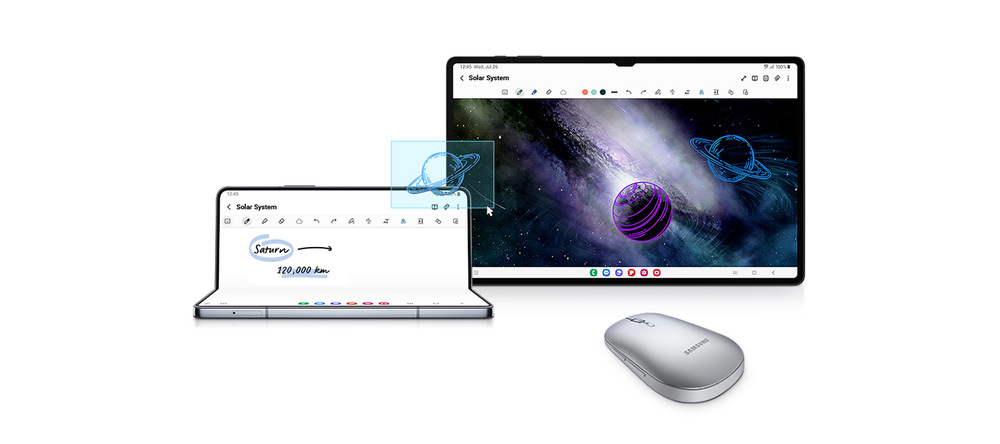 Zvládněte náročné úlohy v rekordním čase a užijte si dokonalou spolupráci napříč různými zařízeními. S funkcí Multi control můžete i na mobilních zařízeních Galaxy Z Fold5 a Galaxy Tab S9 využít klávesnici a myš, a v mžiku je proměnit v plnohodnotné pracovní nástroje, s možností snadného kopírování textu a dalšího obsahu. A v případě, že budete potřebovat pracovat v hned několika aplikacích zároveň, jednoduše použijte tablet jako druhou obrazovku a zefektivněte si svou mobilní kancelář na maximum.