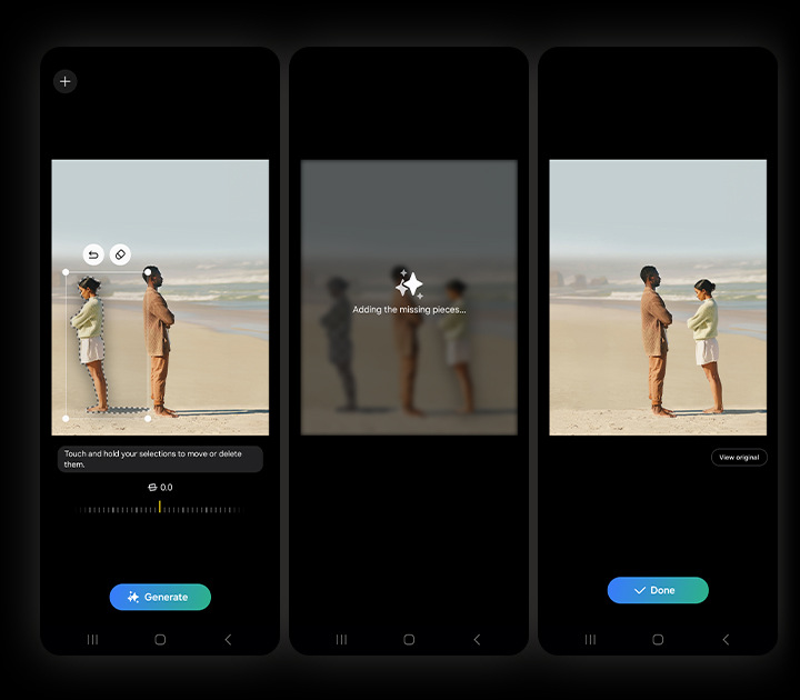 S aplikací Photo Assist můžete upravovat své fotografie jako profesionál, aniž byste museli používat specializovaný software. Využijte možnosti Galaxy AI* k bezproblémovému odstraňování nechtěných objektů nebo doplnění prázdných míst na fotografiích. Vadí vám nežádoucí prvek na pozadí? To není problém. Všechny tyto nástroje pro úpravu jsou nyní snadno dostupné, což vám usnadní úpravu jakéhokoli vašeho snímku.