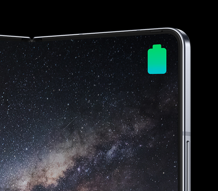 Telefon Galaxy Z Fold5 bude moci být každý den s vámi, připraven do akce. Duální systém baterie s kapacitou 4 400 mAh poskytne dostatek prostoru pro dlouhou a ničím nerušenou práci v kanceláři i na cestách, a rovněž vás dokáže zabavit ve chvílích odpočinku. Využívá energeticky efektivních vnitřních komponent a chytrých algoritmů, které okamžitou spotřebu přizpůsobují vašim zvykům a potřebám, takže na jedno nabití vydrží podstatně déle. Vy tak budete moci vyplnit až 73 hodin poslechem oblíbené hudby, nebo bez přerušení sledovat vizuální obsah po dobu až 21 hodin.