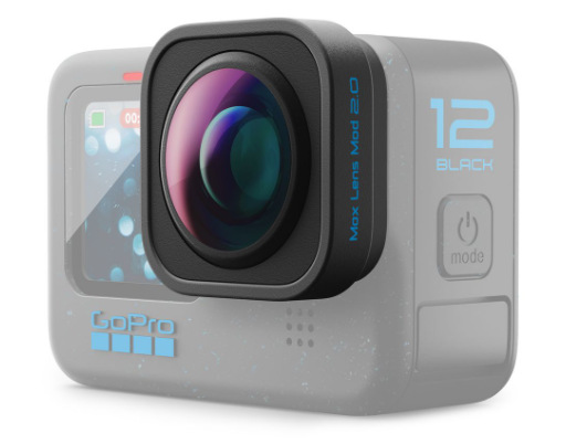 Objektiv Max Lens Mod 2.0 navržený přímo pro akční kameru GoPro HERO12 Black je vynikající cestou, jak dosáhnout maximálně stabilizovaného videa bez nežádoucího roztřesení se zorným polem o 36 % širším než při širokoúhlém snímání samotnou kamerou HERO12 Black.