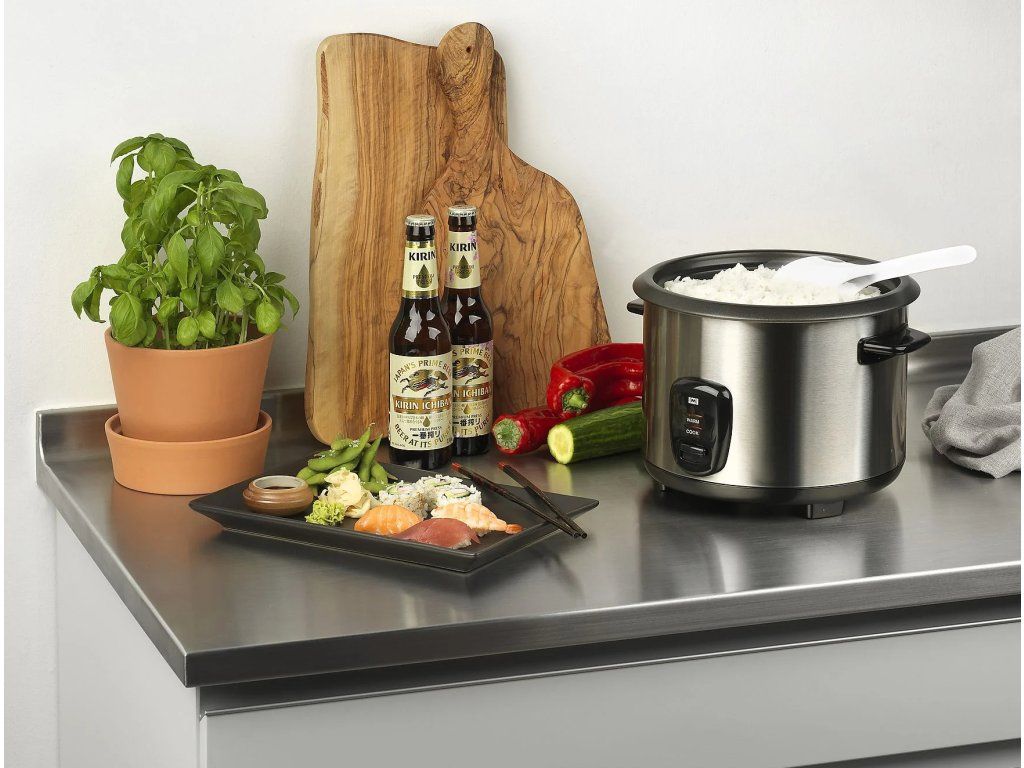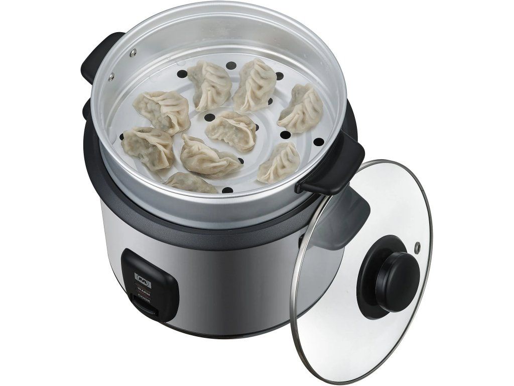 Multifunkční hrnec je všestranný kuchyňský pomocník, který spojuje funkce vařiče rýže a parního hrnce. Jeho design z nerezové oceli v kombinaci s černými detaily dodává moderní vzhled. Nabízí kapacitu 1,5 litru, což je ideální pro přípravu větších porcí jídla. Výkon 500 W zajišťuje rychlé a efektivní vaření, přičemž nepřilnavý povrch nádoby usnadňuje její čištění.