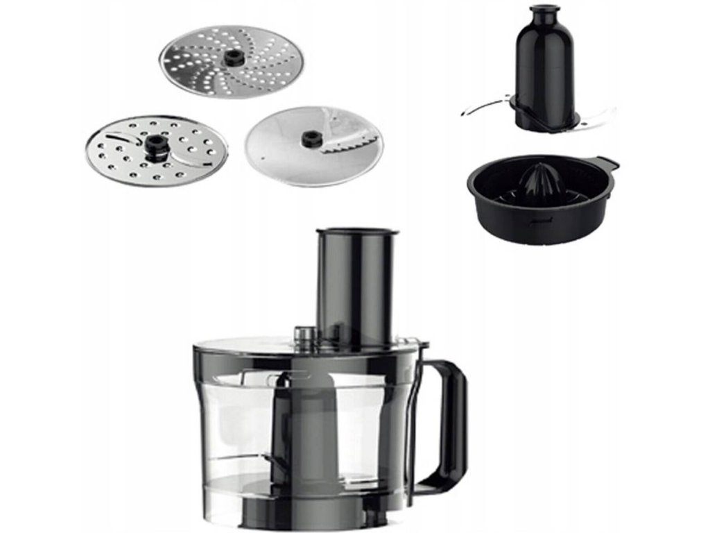 - Food procesor - pomocník, který je určen především na sekání, strouhání, krájení. Je vhodný i pro mixování či šlehání pro přípravu brambor, měkké či tvrdé zeleniny, sýra, čokolády a ovoce