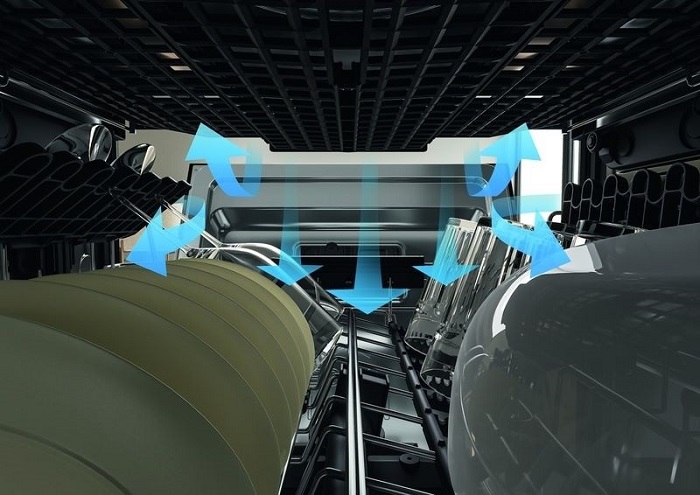 Systém NaturalDry využívá k sušení umytého nádobí vzduch z okolí myčky. Dvířka se při poklesu teploty na přibližně 40 °C pomalu automaticky otevřou a k důkladnému sušení nádobí se tak využívá proudění okolního vzduchu. Efektivní a energeticky úsporné řešení se skvělými výsledky!