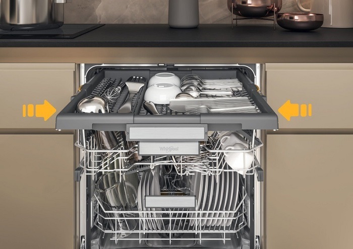 Dlouhé kuchyňské nářadí, příbory, misky, šálky nebo malé talířky. Třetí zásuvka je vhodná pro všechny kuchyňské pomůcky a jejich oddělené a současně přehledné uspořádání usnadňuje vyjmutí po skončení cyklu. Zásuvka myčky Whirlpool je však o kapku chytřejší, je flexibilní. Dvě boční posuvné přihrádky maximálně využívají výšku spodního prostoru a umožní vkládat vysoké předměty do horní zásuvky. Nepřilnavá úprava přispívá k tomu, že kuchyňské pomůcky budou vždy suché.