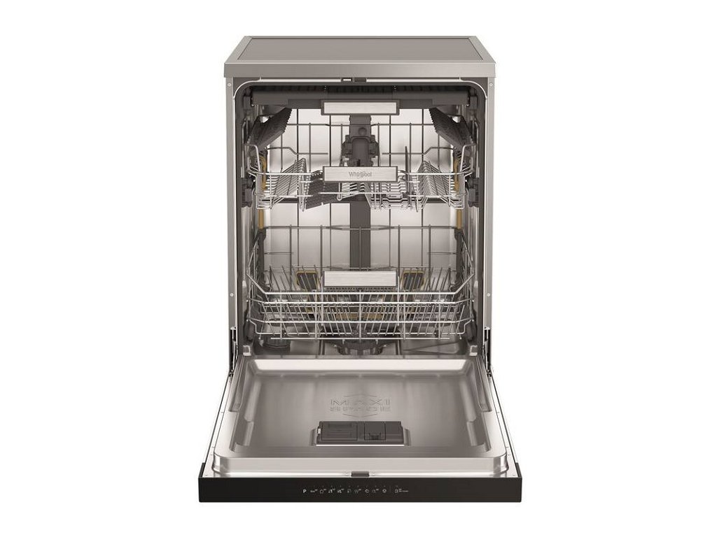 Více prostoru a řada vyjímatelných a skládacích prvků usnadní uložení velkých i malých talířů, misek, šálků, příborů, kuchyňského nářadí, hrnců... Myčka nádobí Whirlpool W7F HP43 X pojme až 15 sad nádobí.