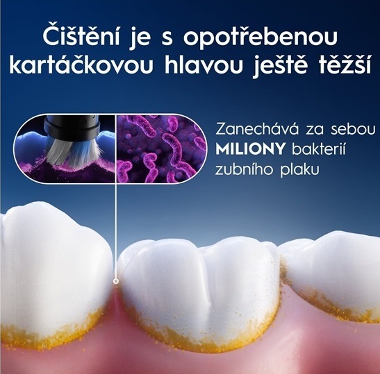 Výměna hlavice je velmi důležitá pro zachování maximální hygieny při čištění zubů. Ve štětinách opotřebené kartáčové hlavy se drží bakterie a další nečistoty.