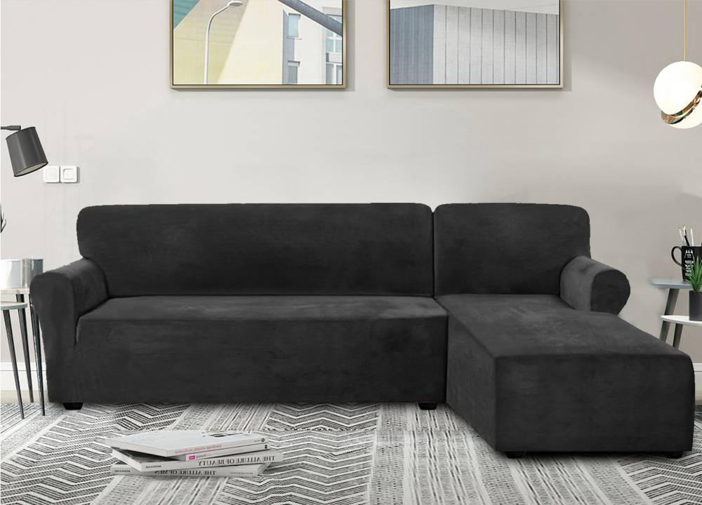 Napínací elastický plyšový potah na trojmístnou rohovou pohovku BestBerg / pravá / černá