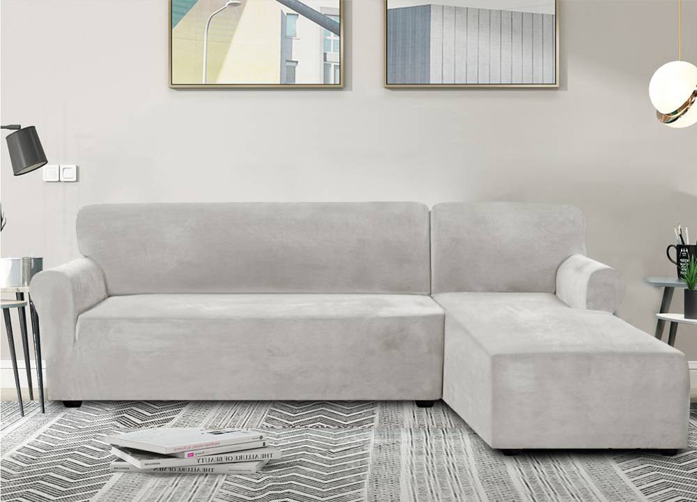 Napínací elastický plyšový potah na trojmístnou rohovou pohovku BestBerg / pravá / světle šedá