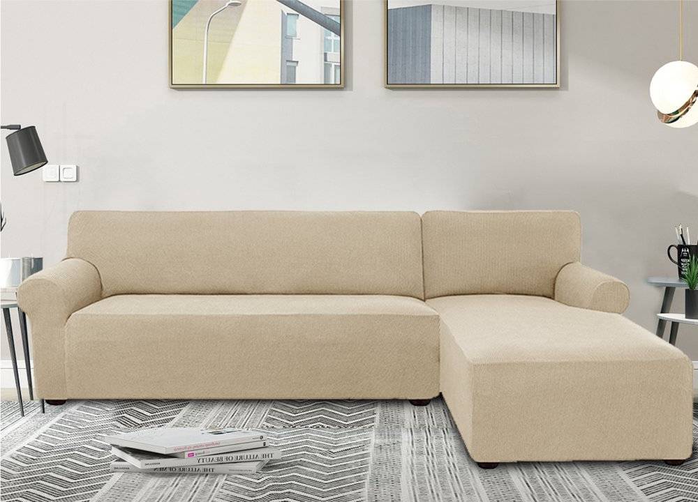 Napínací elastický žakárový potah na trojmístnou rohovou pohovku BestBerg / pravá / přírodní