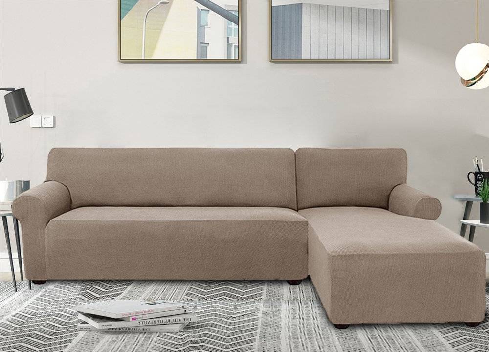 Napínací elastický žakárový potah na trojmístnou rohovou pohovku BestBerg / pravá / světle hnědá
