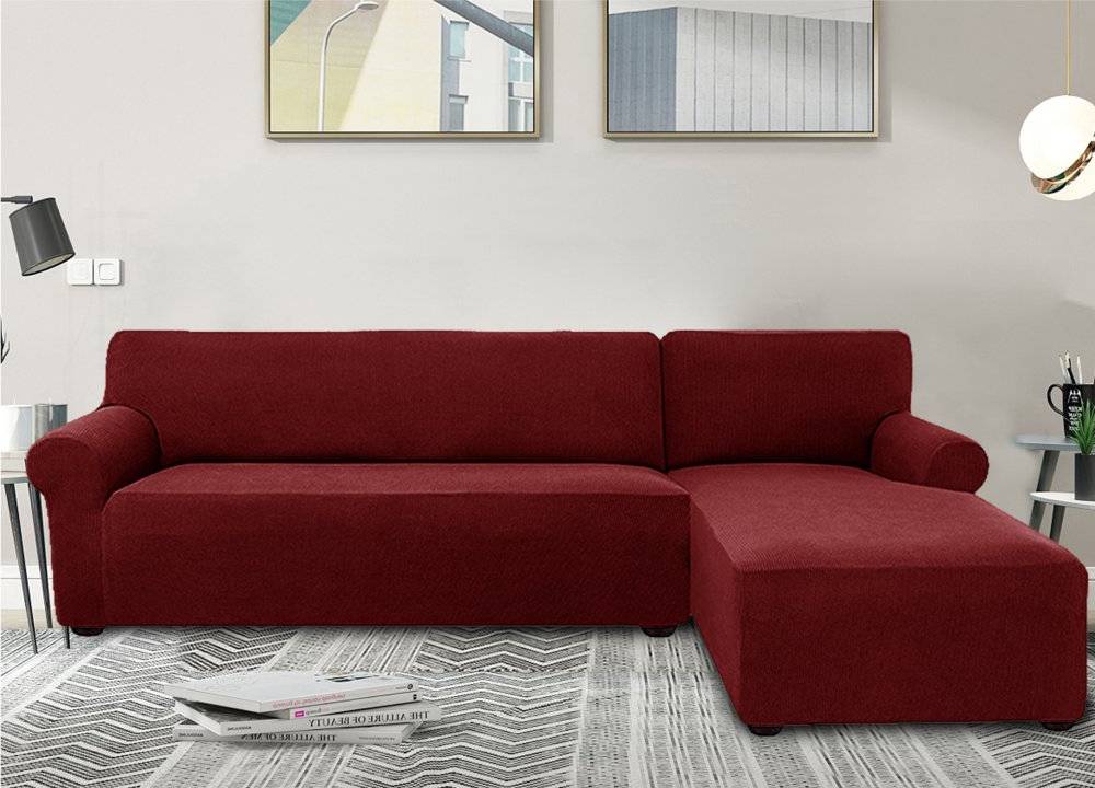 Napínací elastický žakárový potah na trojmístnou rohovou pohovku BestBerg / pravá / vínová