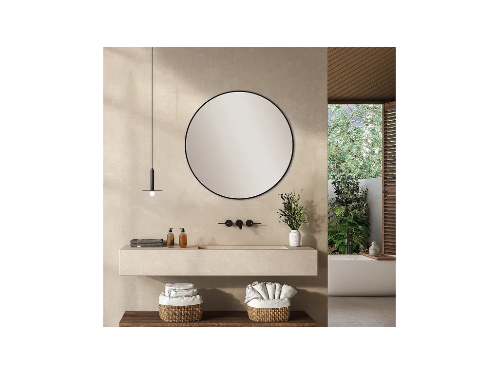 Zrcadlo Picasso v rámu o průměru 80 cm představuje stylový a zároveň praktický doplněk do koupelny i obytných prostor. Jeho čistý kulatý tvar v kombinaci s černým hliníkovým rámem působí nadčasově a snadno se přizpůsobí různým stylům interiéru – od moderního po minimalistický. Zrcadlo se stává výrazným, ale přitom harmonickým prvkem místnosti.