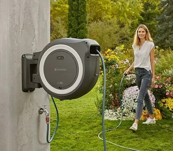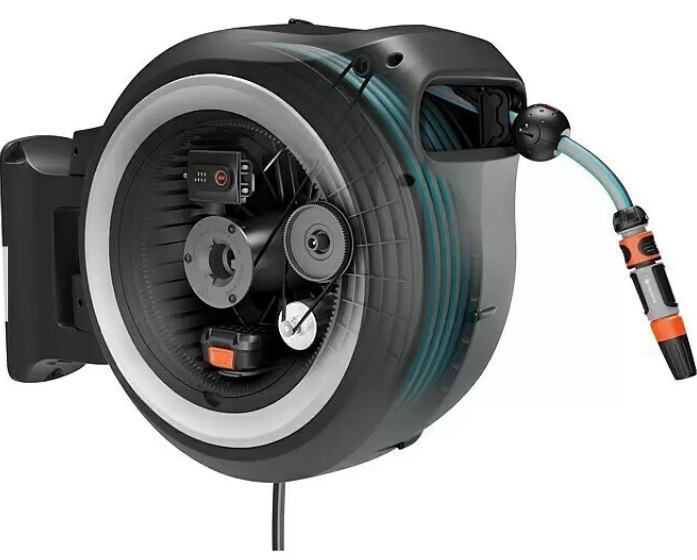 - Nástěnný naviják na hadici GARDENA Power-Roll XXL / baterie / hadice 40 m / 18 V / černá