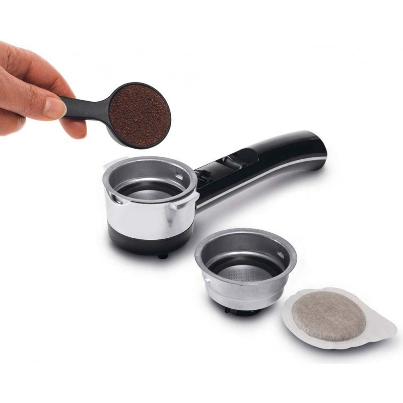 Kávovar je opatřen speciálním pákovým systémem s vyjímatelným filtrem, díky kterému v něm lze připravovat nápoje jak z běžné mleté kávy, tak z předem připravených E.S.E. podů. Můžete si tak dopřát požitek z procesu tvorby kávy když máte čas, nebo jen rychle vložit kapsli v případě, že zrovna spěcháte do práce.