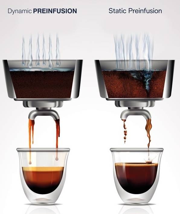 Dosáhněte jedinečné extrakce díky funkci dynamického předspaření. Pákový kávovar má 8 přednastavených receptů a 5 teplotních profilů, které jsou speciálně upraveny podle typu kávových zrn. Dynamické předspaření zaručí rovnoměrnou extrakci dle hustoty mletí a ideální vlhkost kávového puku před extrakcí.