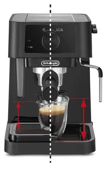 Odkapávací tácek má možnost nastavení výšky podle velikosti šálku nebo sklenice. Kávu můžete podávat do malých hrnečků i dlouhých sklenic na latte macchiato