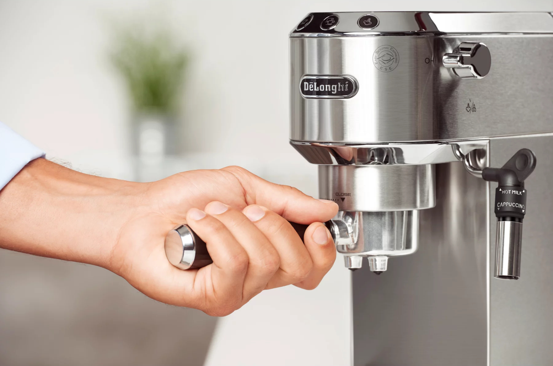 - Pákový kávovar s kávomlýnkem De'Longhi Dedica Style ECKG 6821.M / 1,1 l / 1350 W / 15 bar / stříbrná/šedá