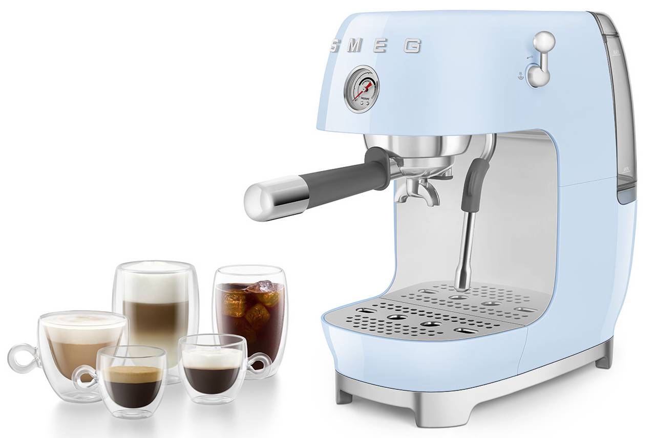 Pákový kávovar Smeg 50's style ECF03PBEU / 1650 W / 15 bar / 1,4 l / pastelově modrá