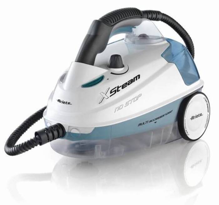 Ariete vám nabízí parní čistič, který překoná i vaše největší očekávání. Základem je odolná nerezová nádržka s kapacitou 1,1 l, chráněná bezpečnostním uzávěrem. Zařízení působí na nečistoty s vylepšením tlakem 4 barů a dokáže pracovat s výkonem až 1500 W. Bez obtíží si zvládne poradit s nečistotami v celém domě nebo bytě. Vysoký výkon dokazuje, že úklid s ním bude ještě jednodušší a efektivnější.