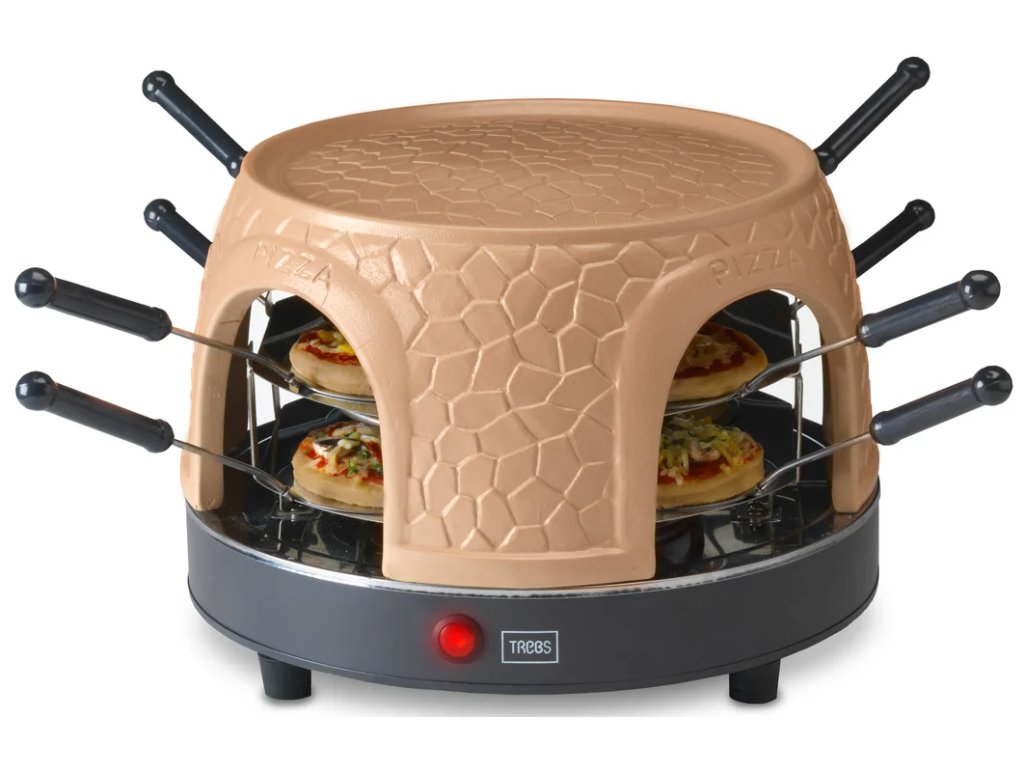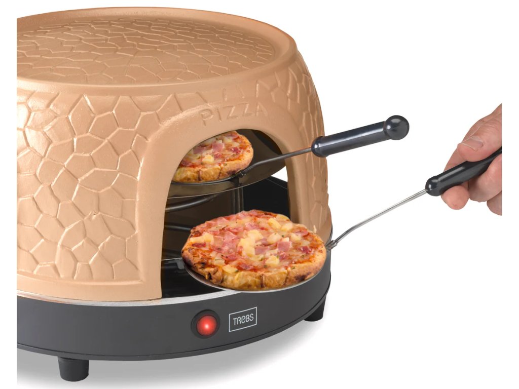 Pec je navržena pro použití až osmi osobami najednou, což ji činí ideální pro rodinné večeře nebo setkání s přáteli. Můžete připravit osm mini pizz najednou nebo jednu velkou pizzu uprostřed. Také je vybavena indikátorem zahřátí, který vás informuje, kdy je pec připravena k použití.