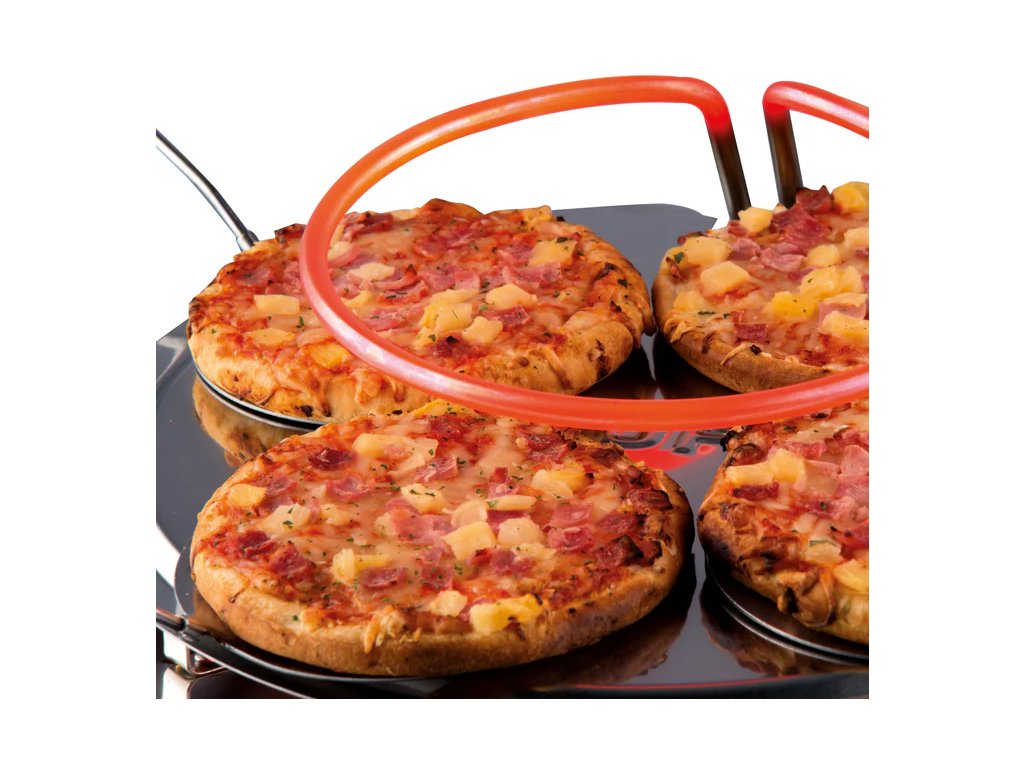 Stolní pizza pec, která je ideální pro přípravu mini pizz nebo jedné velké pizzy. Tato pec je vybavena keramickou kopulí, která napodobuje tradiční kamennou pec, což zajišťuje rovnoměrné rozložení tepla a křupavou kůrku na každé pizze. S výkonem 1200 W dosahuje pec vysokých teplot až 350°C, což umožňuje rychlé a efektivní pečení.