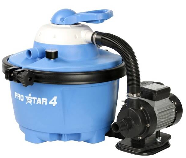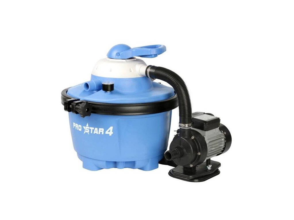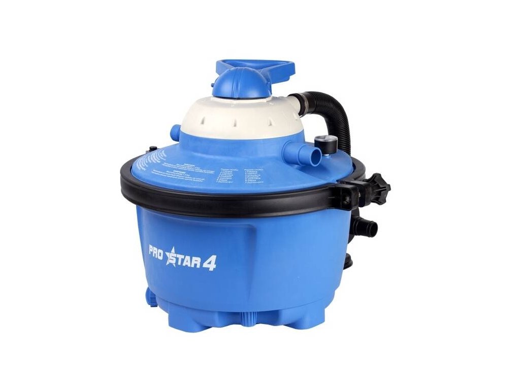 Písková filtrace Marimex ProStar 4 je vhodná pro všechny druhy nadzemních bazénů do objemu 20 000 litrů. Filtrace se skládá z nádoby, která pojme 17 kg filtračního písku, šesticestného ventilu (proplach, filtrace, čištění, vypnutí, zpětný chod, vypouštění) a tlakoměru. Součástí balení jsou přechodky na hadice o průměru 32/38 mm.