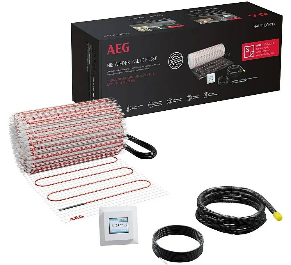 Samolepicí nosná mřížka s ochrannou fólií umožňuje rychlou a jednoduchou montáž přímo na podklad. Součástí sady je také regulátor, podlahový snímač a prázdná chránička pro kabeláž – vše potřebné pro profesionální instalaci. AEG TBS TC 200/3 SET PLUS představuje spolehlivé a dlouhodobé řešení pro moderní a pohodlné podlahové vytápění.
