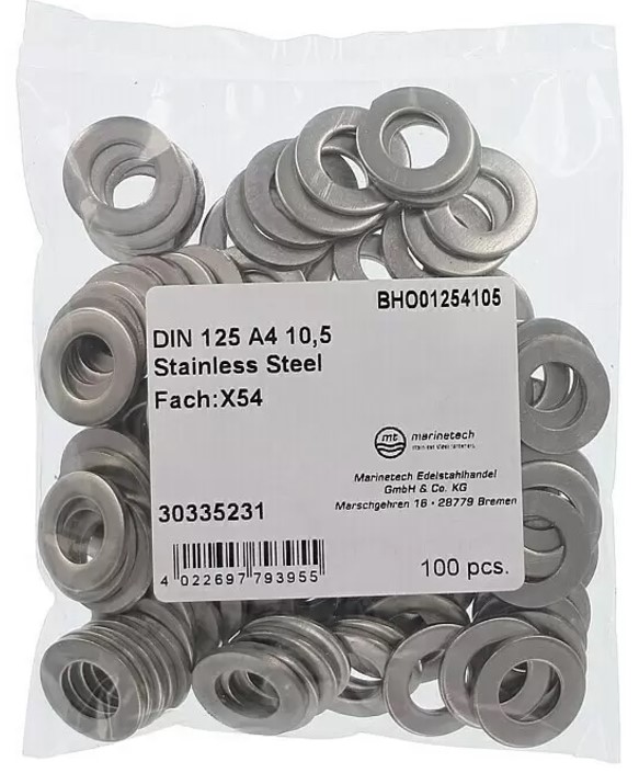 Podložka Marinetech zvětšuje kontaktní plochu hlav šroubů a matic pro lepší rozložení síly na šroubovaný materiál. Podložka je vyrobena z nerezové oceli A4 a je proto nerezová.