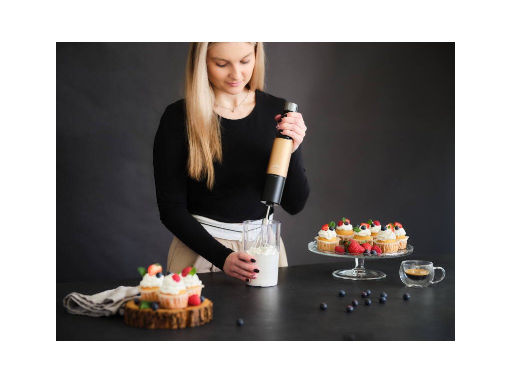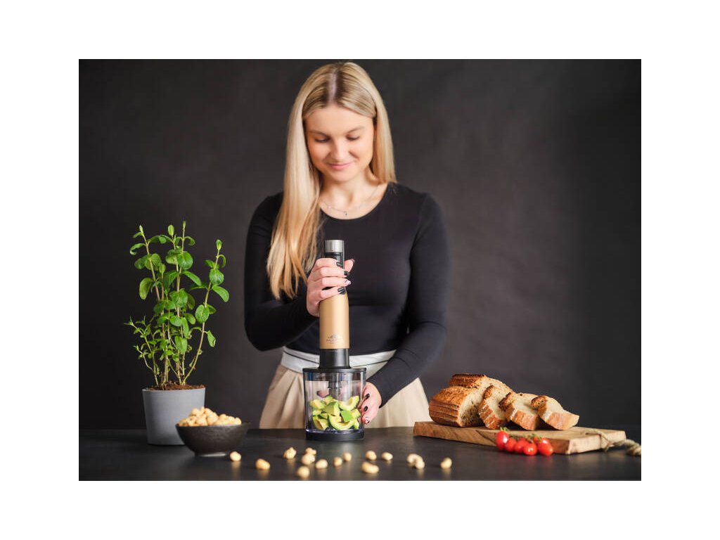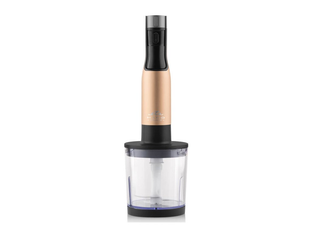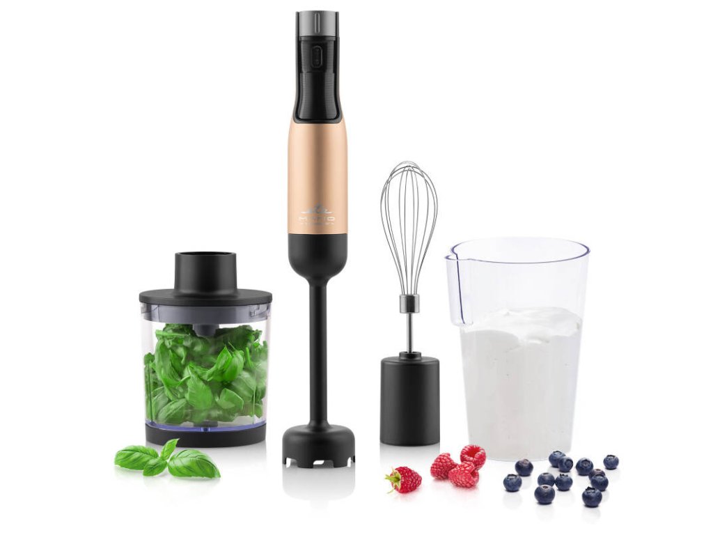 Ponorný mixér ETA Mano 3219 90020 v nádherném metalickém designu vás nezklame při žádném úkolu v kuchyni. Ať už se chystáte připravit krémové polévky, skvělé smoothie, dokonalou šlehačku, nebo nasekat ořechy, poradí si se vším! Jeho skvělý výkon zaručí silný 1 000W DC motor spolu s extrémně ostrým titanovým čtyřramenným nožem Blende X. Není to ale jen výkon, kterým ETA Mano 3219 90020 vyniká. Je to i jeho moderní LCD displej se kterým budete mít celý proces přípravy pod kontrolou. Také bohaté příslušenství, díky kterému se můžete pustit do mixování, šlehání i sekání. A ergonomická rukojeť zaručí, že se vám bude mixér pohodlně držet i při delší práci v kuchyni.