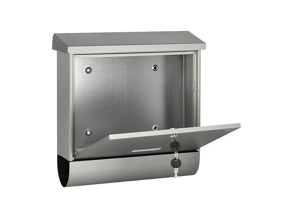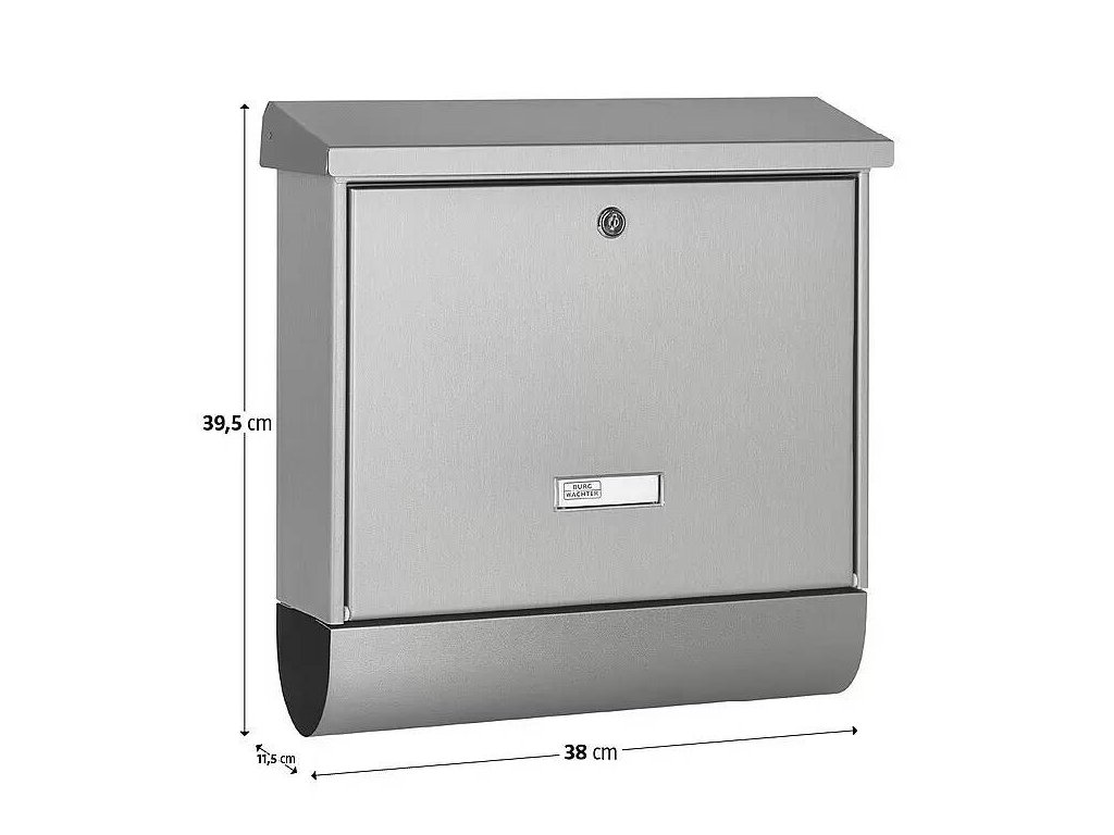 Poštovní schránka Burg Wächter Inoxstar 4720 je vyrobena z vysoce kvalitní nerezové oceli. Disponuje přihrádkou na poštu s horním vhozem o šířce cca 4 cm a doplňkovou přihrádkou na noviny ve spodní části schránky. Šikmá stříška, která přesahuje po stranách i zepředu, poskytuje ochranu před povětrnostními vlivy.