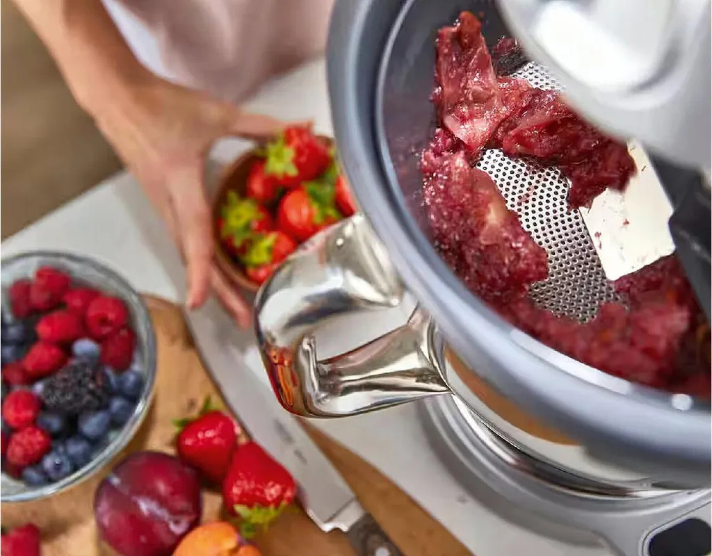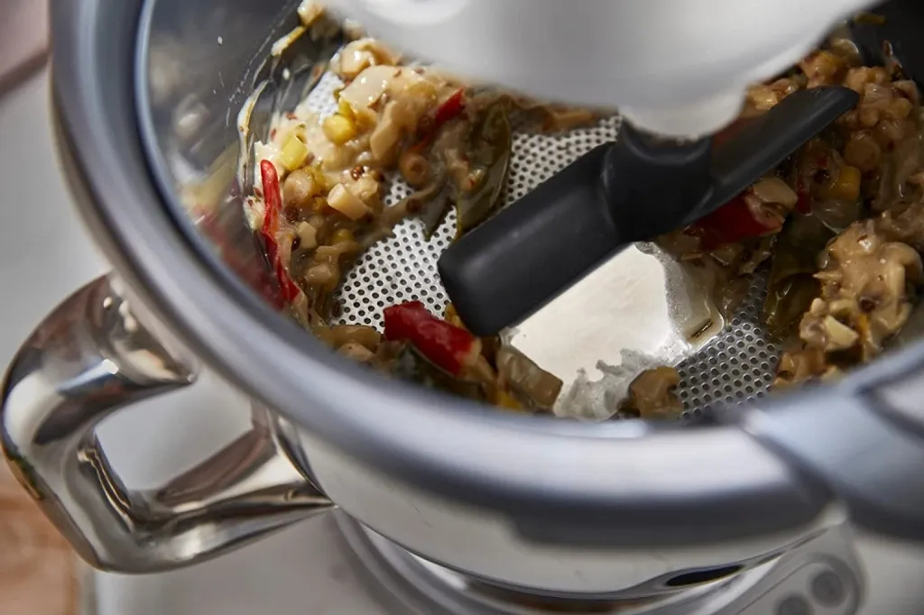 Ideální pro přípravu lahodných domácích džemů, polévek, omáček, pyré, ale i dětské výživy. Nový mixovací nástavec Kenwood byl vylepšen, aby ještě lépe vyhovoval vašim potřebám. S nástavcem na sítko a cedník Kenwood můžete vyřešit širokou škálu úkolů pomocí jednoho příslušenství. Jednoduše se sestavuje a snadno se čistí. Nádoba o objemu 500 g a funkce automatického míchání umožňují zpracovat ovoce, zeleninu a suché produkty v krátkém čase.