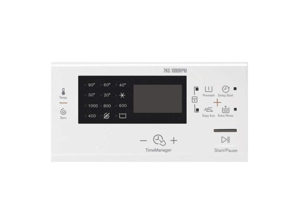 Předem plněná pračka. Velmi energeticky úsporná. S velkým plnícím otvorem. A++, 1000 ot./min., 7 kg., displej, český panel a popisky, Time Manager Nastavte cyklus podle svého plánu - ne naopak Profesionální prací systémy Electrolux jsou šité na míru každému cyklu. S funkcí TimeManager® se také můžete rozhodnout, jak přesně má cyklus trvat - a obléct si, co chcete a kdy chcete. Můžete upravit cyklus podle toho, kolik času máte. Přesvědčte se, že vaše prádlo je připraveno přesně tehdy, kdy potřebujete.