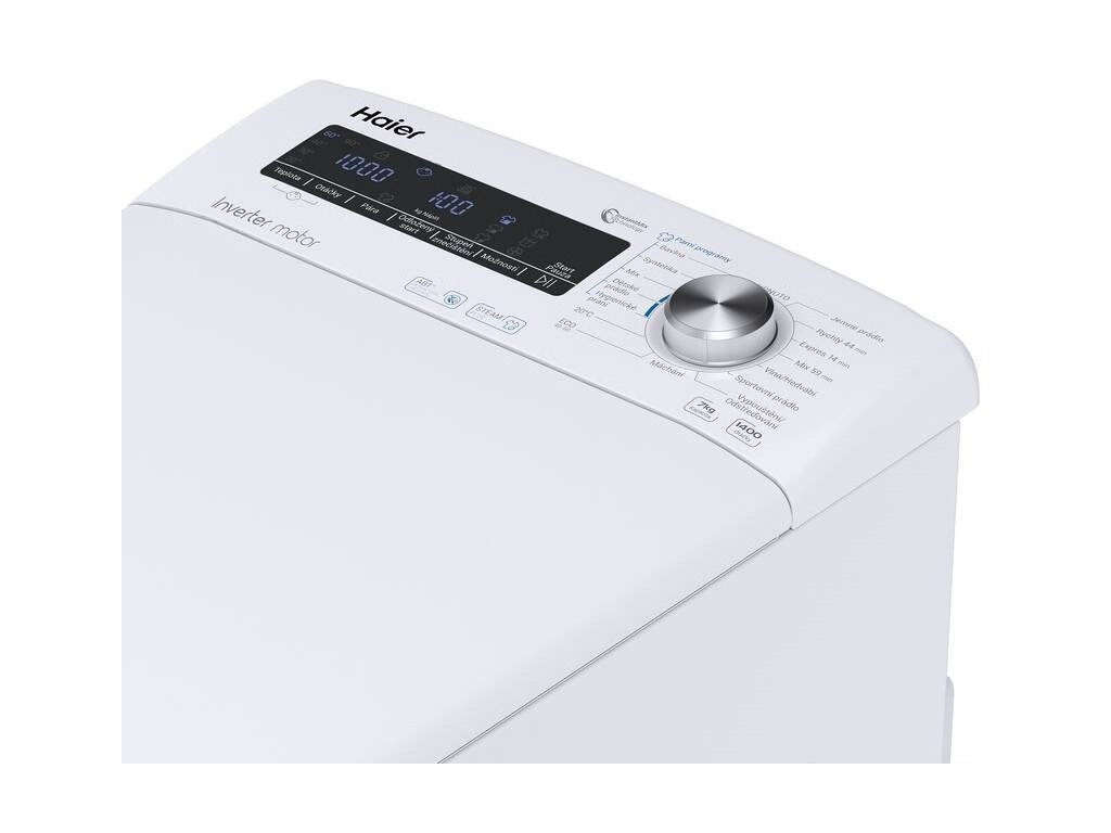 Automatická vrchem plněná pračka Haier RTXSGP47TMSCE-36 vám zajistí profesionální úroveň praní. I přes své malé kompaktní rozměry má kapacitu až na 7 kg prádla. Každá z funkcí byla navržena pro maximální výkon s minimální spotřebou energie a minimálním hlukem. Antibakteriální úprava ABT nedovolí plísním a bakteriím ovládnout vaší pračku. Budete mít neustále kontrolu nad čistotou zásuvky na prací prostředky, ale i u těsnění otvoru dveří. Pračka nabízí 15 programů, které můžete navolit pomocí otočného ovladače na panelu, který je v češtině. Na levé straně se nachází displej, kde se dají navolit další podfunkce.