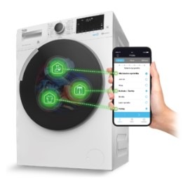 Po propojení spotřebiče Beko s aplikací HomeWhiz ve vašem chytrém telefonu lze pračku se sušičkou ovládat na dálku pomocí Bluetooth. Využít můžete také možnosti stahování a vlastní úpravy dalších programů.