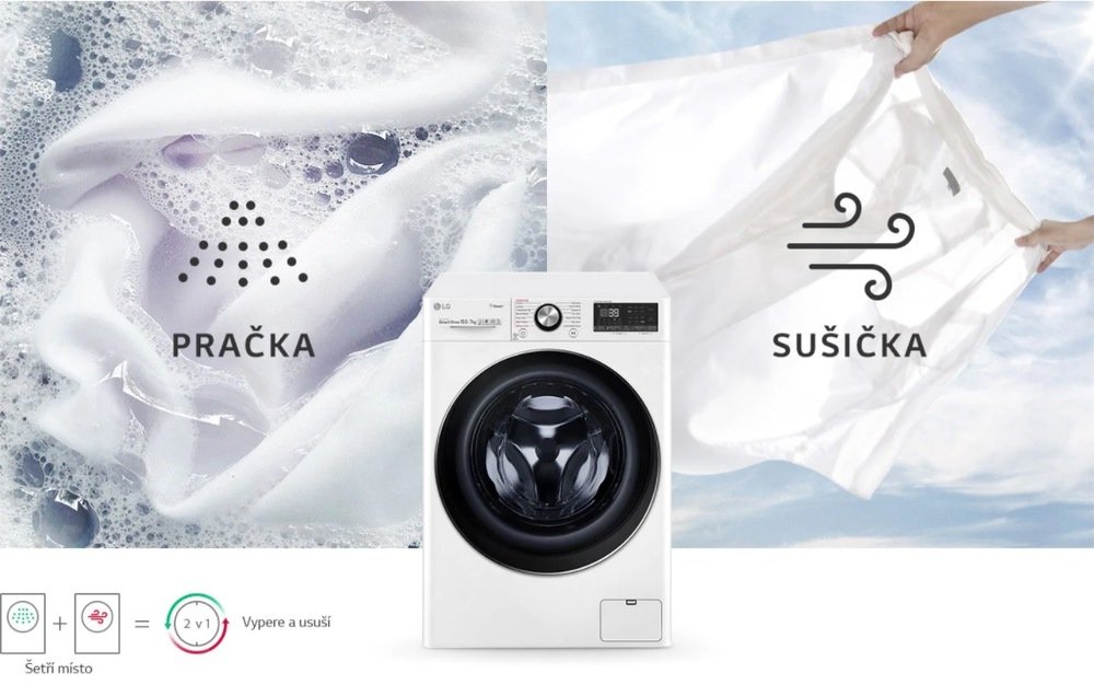 Šetřete doma drahocenným místem a pořiďte si pračku se sušičkou v jednom. Spojuje v sobě špičkové technologie LG, díky nimž budete mít zářivě čisté a suché prádlo, aniž byste museli kupovat samostatnou sušičku.