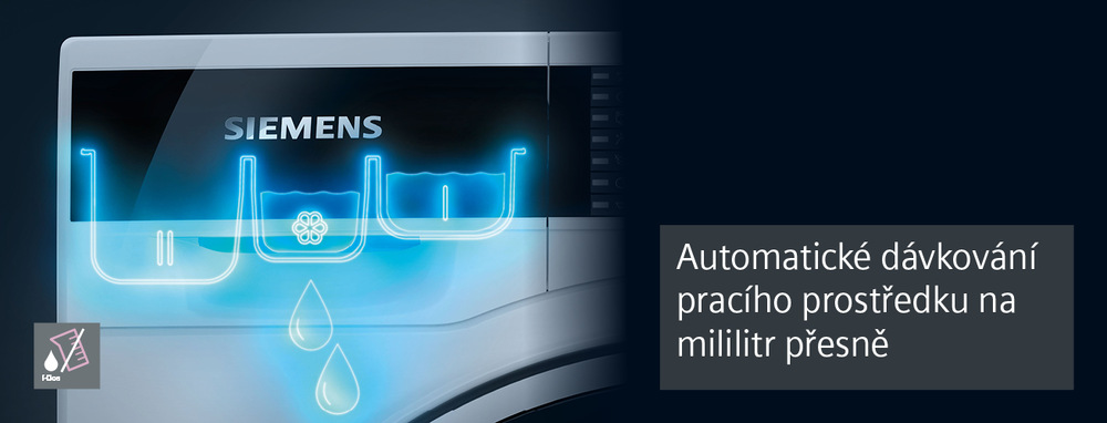 Automatický systém dávkování i-Dos dokáže na milimetr přesně určit správné množství pracího prostředku a aviváže. Pomocí senzorů zjistí typ a množství prádla, detekuje jeho znečištění a podle toho vypočítá, kolik je potřeba vody a pracího prostředku. Vaše prádlo bude perfektně vypráno s optimální spotřebou vody a pracího gelu.