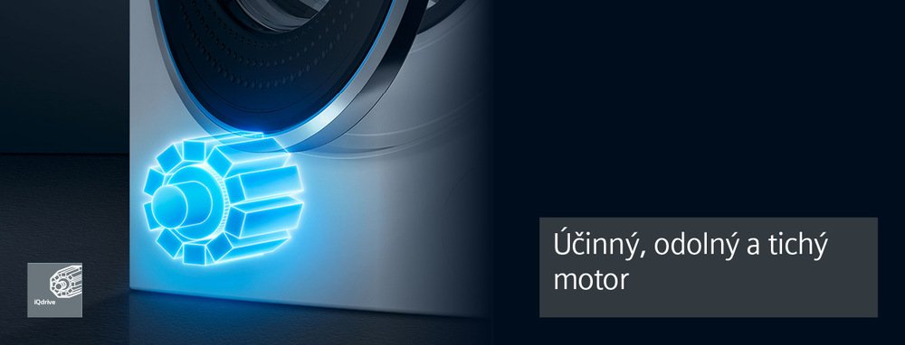 Efektivní motor iQdrive je kvalitní a velmi spolehlivý. Vyberte stejný výkon s nižší spotřebu energie, krátký program s perfektními výsledky nebo maximální otáčky při odstřeďování. Bezuhlíkový motor si se vším poradí a jistě oceníte jeho tichý a spolehlivý chod.