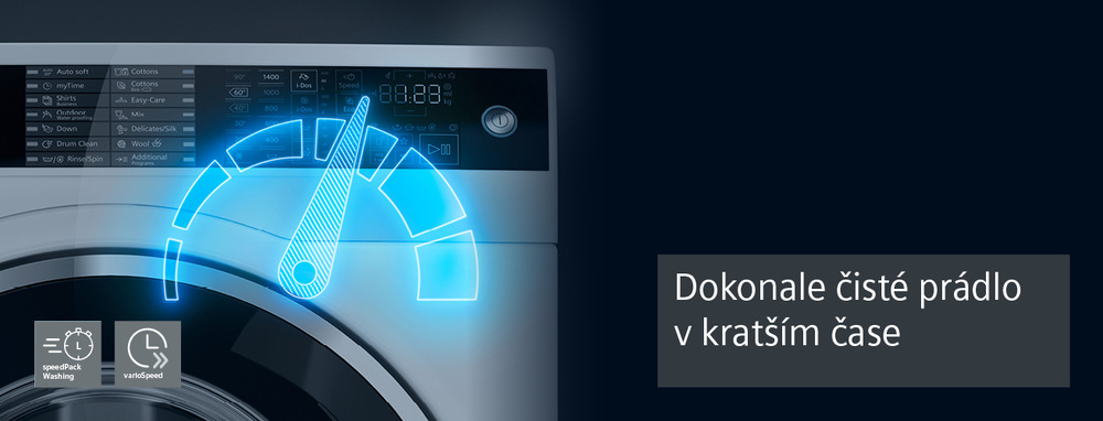 Pračky Siemens mají technologii speedPack L, která zvládne vyprat prádlo za 15 minut nebo vám umožní urychlit prací program. Funkce varioSpeed pomocí chytrých senzorů zjistí objem náplně a druh materiálu a podle toho přizpůsobí proces praní. Teď už budete prát efektivně a ušetříte spoustu času.