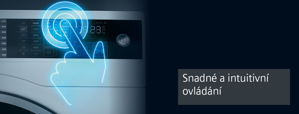 Na velkém LED displeji se vám pračka bude ovládat velmi jednoduše. Jsou zde dotyková tlačítka, ukazatelé (dle modelu) průběhu programu, nastavená teplota, počet otáček, nastavení i-Dos a ukazatel spotřeby. Vidíte i zbytkový čas v minutách a můžete na pračce nastavit konec praní až za 24 hod. Budete mít přehled o všem.