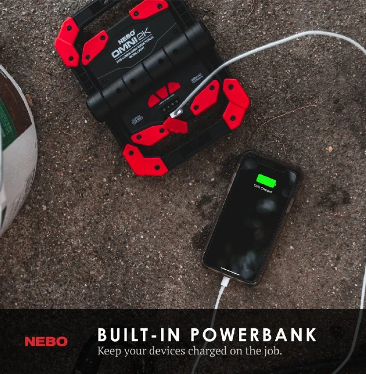 Pracovní světlomet 2v1 NEBO Omni 2000 / funkce powerbanky / 2000 lumenů / černá / červená