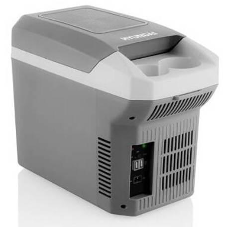 Malá autochladnička Hyundai HYUMC08 je vynikajícím společníkem na cesty, chalupu nebo do kempu. Má kompaktní rozměry 29,5 x 20 x 39,5 cm a úložný prostor s objemem 8 litrů. V autě ji lze připojit pomocí autokonektoru a 2 m napájecího kabelu.