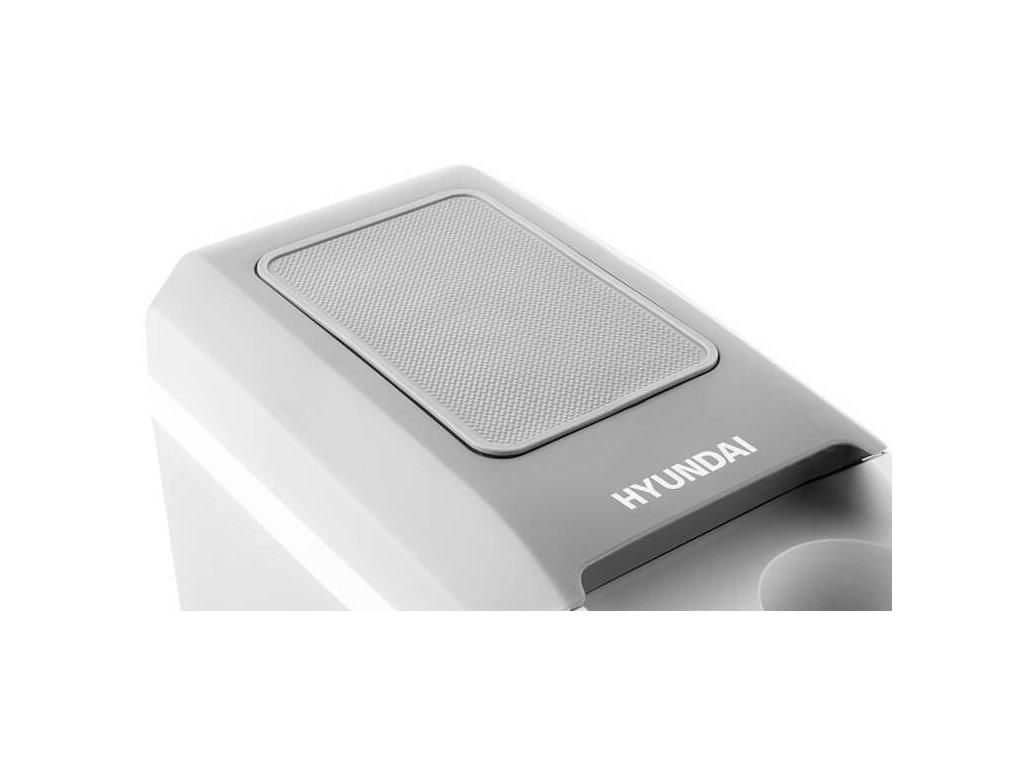 K dispozici vám bude délkově nastavitelný popruh pro snazší nošení. Hyundai HYUMC08 nabízí také odkládací prostor s protiskluzovou plochou na drobnosti. Do dvou otvorů ve víku můžete umístit například lahve, kelímky nebo další drobnosti.