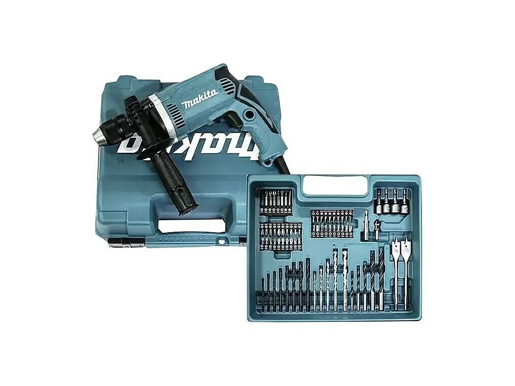Navzdory svým kompaktním rozměrům má příklepová vrtačka HP1631KX3 výkonný 710W motor, který si hravě poradí i s vrtáním do tvrdého materiálu. Lze tedy snadno vrtat otvory i do tvrdých materiálů, jako je ocel a zdivo. Maximální kapacita vrtání do dřeva je 30 mm, do oceli 13 mm a do zdiva 16 mm. Součástí dodávky je praktický kufr na nářadí s 74 díly příslušenství. Obsahuje všechny důležité nástroje pro vrtání.