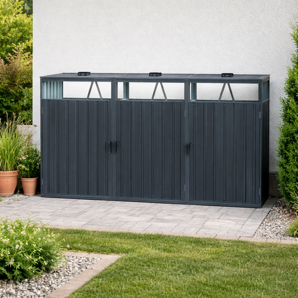 Přístřešek na 3 popelnice BestBerg BBTS-MK3 / 1,9 m² / 240 x 80 x 122 cm / antracitová