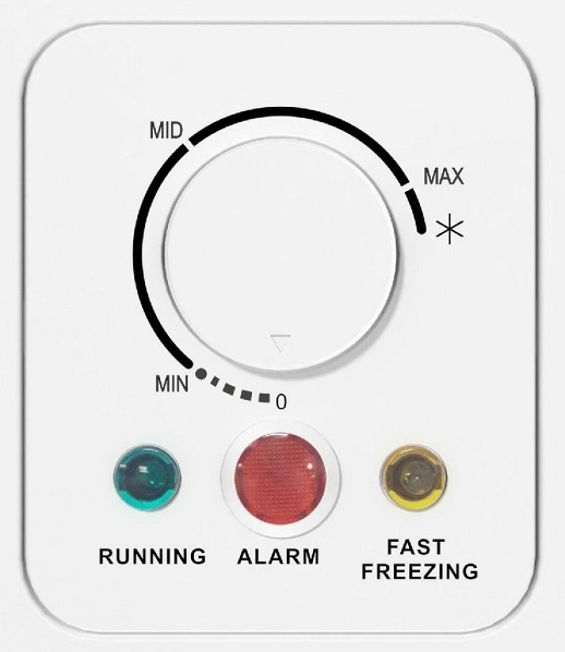 Ovládání mrazáku je jednoduché a přehledné. Nachází se na vnější straně mrazáku a v případě zvýšené teploty se o upozornění postará světelný signál. Pro manipulaci s mrazákem jsou k dispozici kolečka, takže jeho přemístění je snadné.