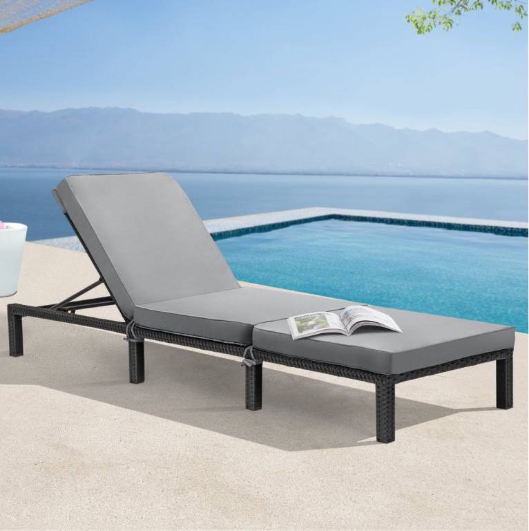 Ratanové lehátko BestBerg BBRF-1140BL / nosnost 120 kg / 180 g/m² / ocel/polyester / černá/šedá