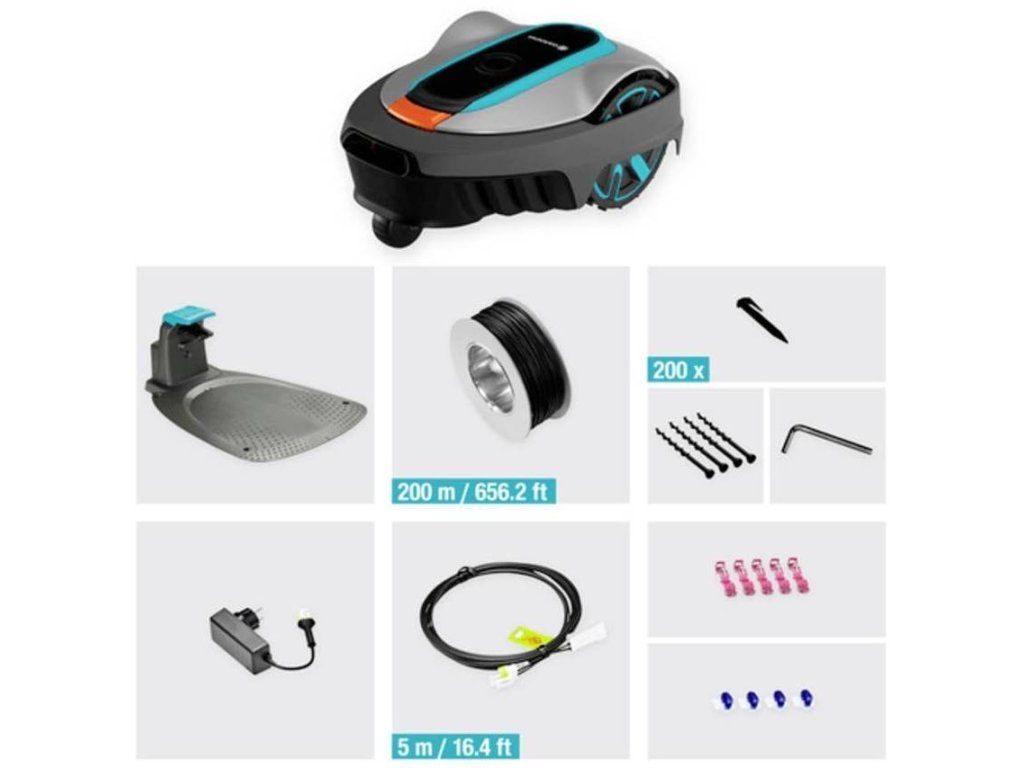 Sekačka je dodávána včetně veškerého potřebného příslušenství – nabíjecí stanice, ohraničující kabel, zemní kolíky, šrouby, imbusový klíč, napájecí adaptér a kabelové konektory. Po vybalení ji můžete ihned nainstalovat a přizpůsobit vašemu trávníku, takže rychle začnete užívat všechny její výhody.