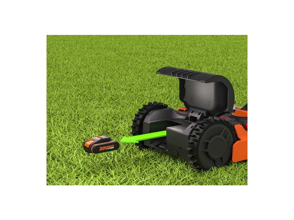 Robotická sekačka Worx Landroid S400 WR184E / 20 V / 2 Ah / 400 m² / oranžová/černá