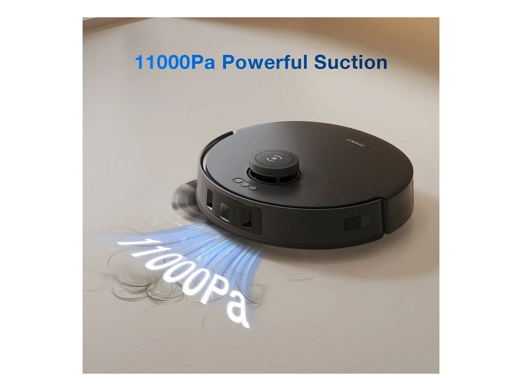 Zařízení s bočním kartáčem spolehlivě uklidí i podél stěn a nábytku. O vytírání se stará systém 2 rotujících mopů OZMO Turbo 2.0 ze žinylkové tkaniny, ale robot může vysávat i koberce – když je detekuje, technologie Auto-Lift Mopping System zvedne dva rotující mopy až o 9 mm a vysoký sací výkon až 11 000 Pa zajistí hloubkové čištění kobercových vlasů.